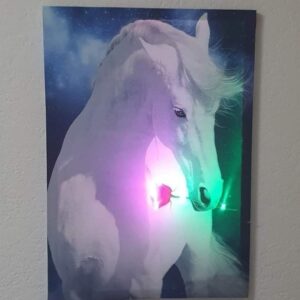 Svijetleće slike na canvas platnu dimenzija 45×65 cm. Svaka slika sadrži ugrađenu LED rasvjetu koja se napaja pomoću baterija. Idealne su za stvaranje ugodne atmosfere u svakom prostoru.